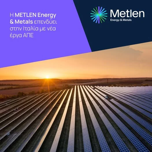 Η Metlen Energy & Metals επεκτείνει περαιτέρω τη δραστηριοποίησή της στην Ιταλία με την εξασφάλιση χρηματοδότησης 67.9 εκατ. ευρώ για την κατασκευή 71,5 MW μέσω πέντε φωτοβολταϊκών πάρκων μεγάλης κλίμακας, τα οποία θα είναι εγκατεστημένα σε περιοχές στρατηγικής σημασίας, όπως η Emilia Romagna, το Lazio, η Campania και η Puglia.