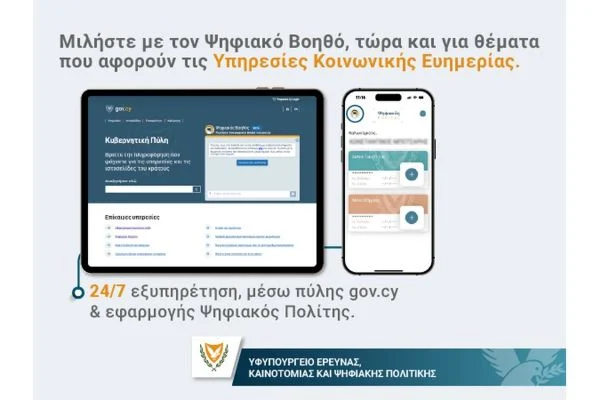 Ο Ψηφιακός Βοηθός ενισχύεται με θέματα που αφορούν τις Υπηρεσίες Κοινωνικής Ευημερίας, προσφέροντας στους πολίτες άμεση, αξιόπιστη και συνεχή εξυπηρέτηση, σε 24ωρη βάση.