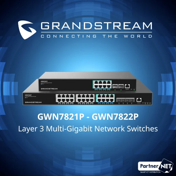 Η σειρά GWN7820 της Grandstream και η PartnerNET, εισάγουν μια νέα εποχή για τα επιχειρηματικά δίκτυα. Αποτελεί Layer 3 managed network switch, περιλαμβάνοντας μοντέλα με PoE, που επιτρέπουν σε μεσαίες και μεγάλες επιχειρήσεις να δημιουργούν επεκτάσιμα, ασφαλή, ευέλικτα, υψηλής απόδοσης και έξυπνα επιχειρηματικά δίκτυα με πλήρη διαχείριση.