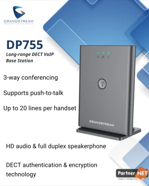 Το DP755 είναι ένας ισχυρός DECT VoIP base station που μπορεί να συνδυαστεί με έως και 10 από τα DECT handsets της Grandstream, προσφέροντας ευελιξία επικοινωνίας σε επιχειρήσεις και οικιακούς χρήστες.