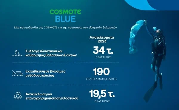 Το 2023, η Cosmote σε συνεργασία με την κοινωνική επιχείρηση «Εναλεία», ξεκίνησαν την πρωτοβουλία Cosmote Blue για την προστασία των ελληνικών θαλασσών και τη δημιουργία ενός βιώσιμου θαλάσσιου οικοσυστήματος.