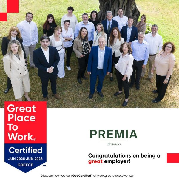 Για 4η χρονιά, η Premia Properties πιστοποιήθηκε ως Great Place To Work, εξέλιξη η οποία επιβεβαιώνει τις προσπάθειες της εταιρείας για τη δημιουργία ενός σύγχρονου, συμπεριληπτικού και ανταποδοτικού εργασιακού περιβάλλοντος, με επίκεντρο τους εργαζομένους της, οι οποίοι αποτελούν τον βασικό κινητήριο μοχλό της ανάπτυξής της.