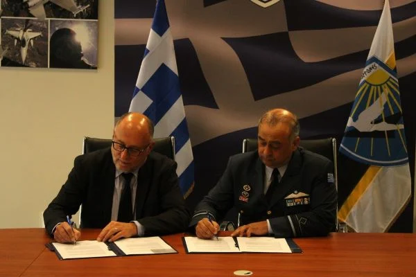 Το Μνημόνιο Συνεργασίας υπέγραψαν ο Διοικητής της Σχολής Ικάρων, Υποπτέραρχος (Ι) Γρηγόριος Καραμπιτιάνης και ο Πρόεδρος & Διευθύνων Σύμβουλος της Thales Hellas, Patrick Defranoux.
