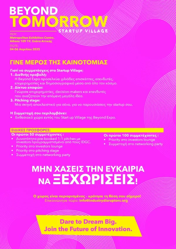 BUSINESS 14/02/2025 BEYOND Tomorrow Startup Village στην 5η έκθεση τον Απρίλιο στην Αθήνα […] Read More